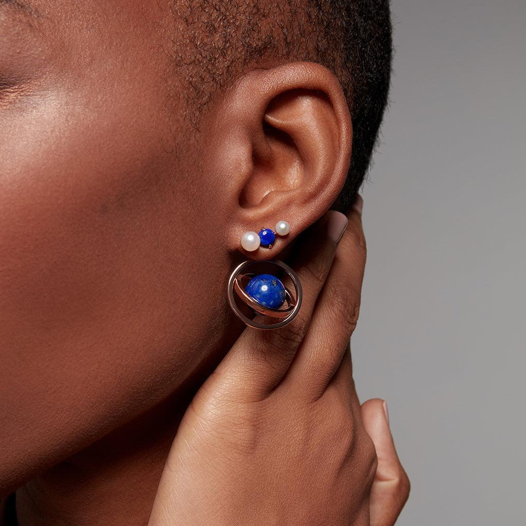 Design inspiration: reimagines the classic pearl earring with a refined, modern twist — adding vibrant lapis detail for depth and intrigue.