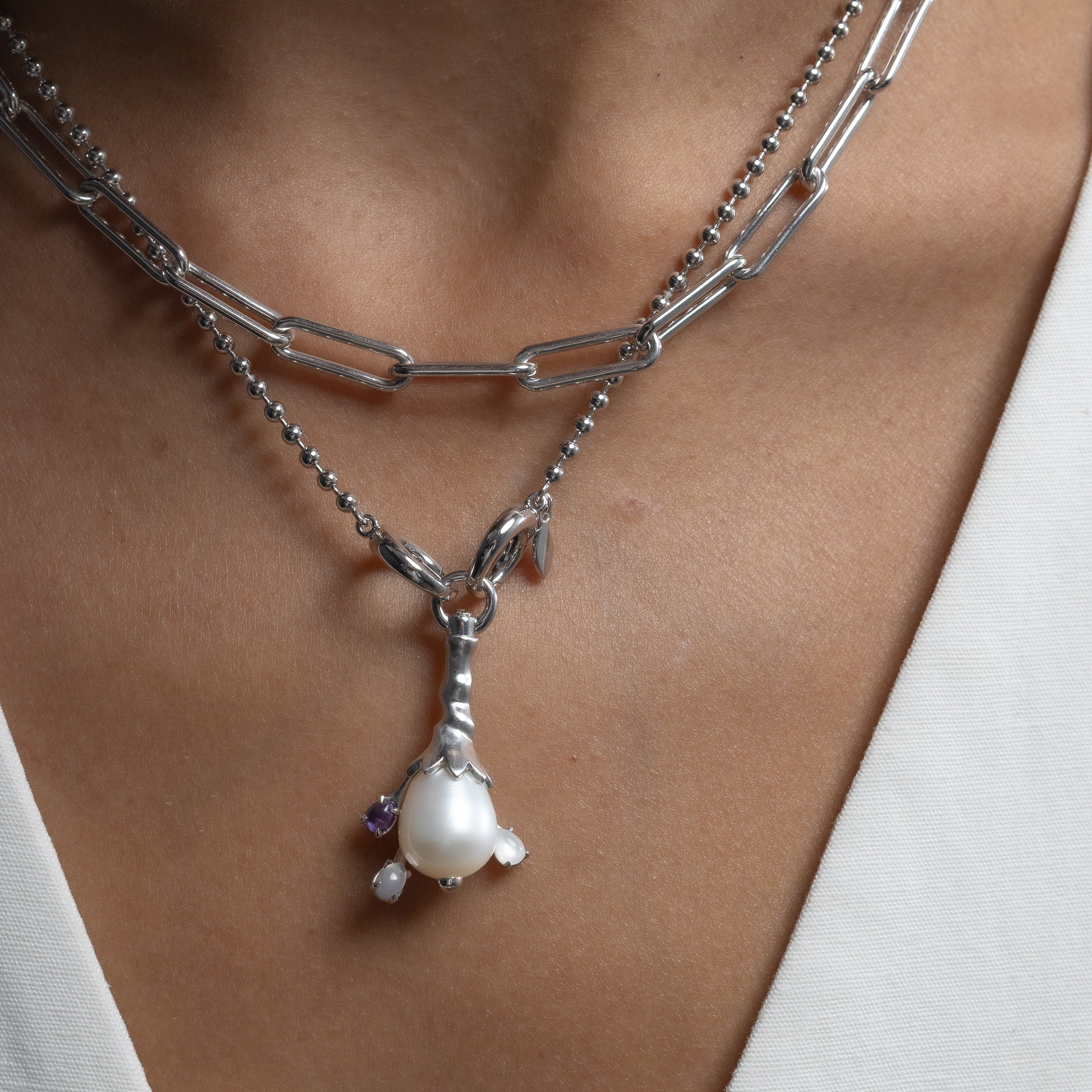 A sculptural charm that carries both softness and light into your jewelry ritual.