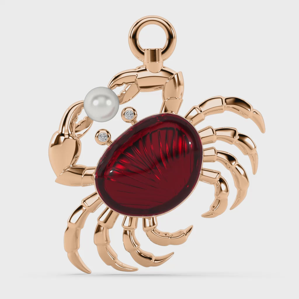Design inspiration: sculptural crab silhouette—its outstretched claws and poised posture symbolize tenacity, emotional intelligence, and the strength to navigate inner tides.