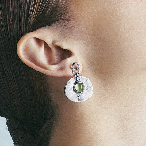 Set with prehnite, a Water element stone associated with renewal and gentle calm.